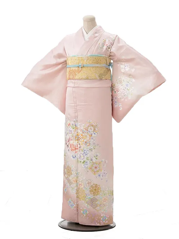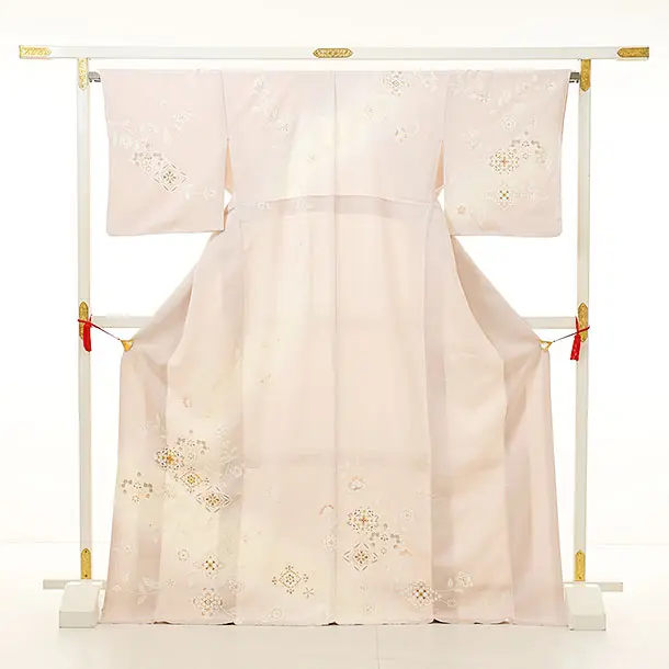 訪問着t1003 薄ピンク 菱に花