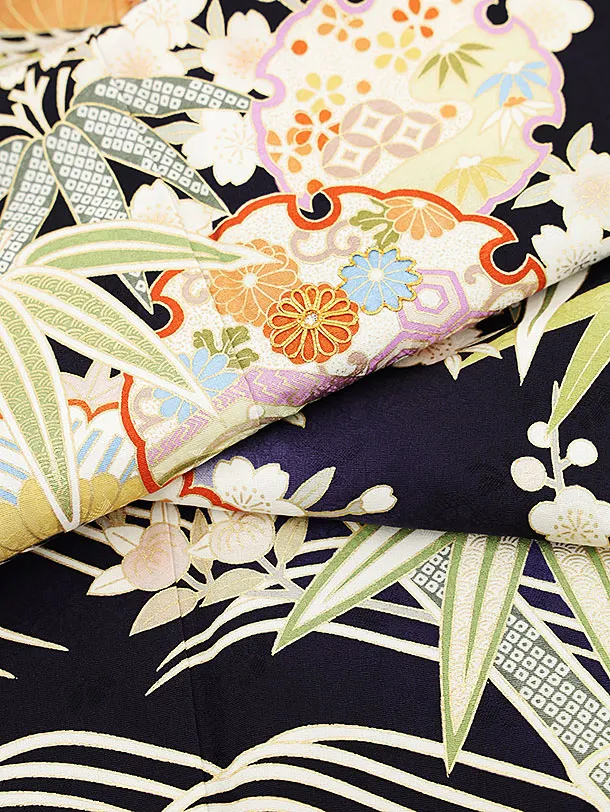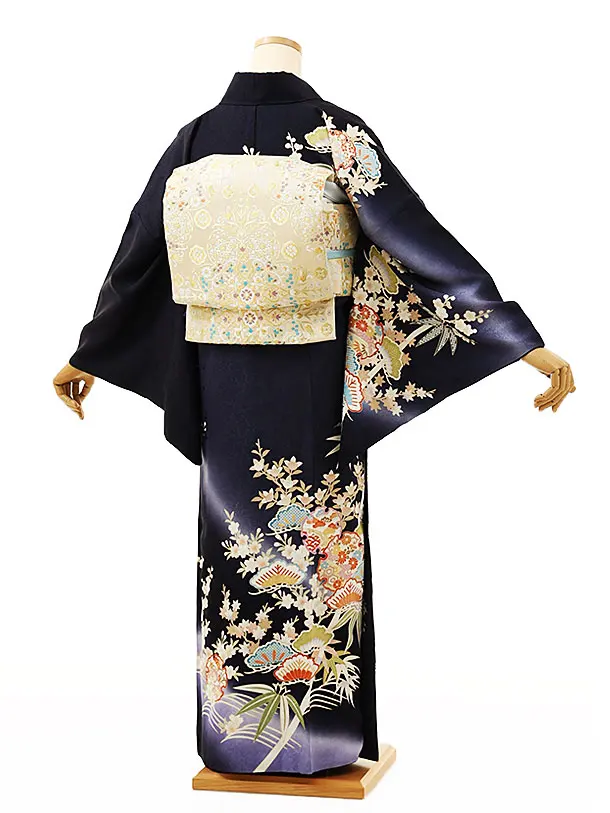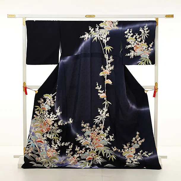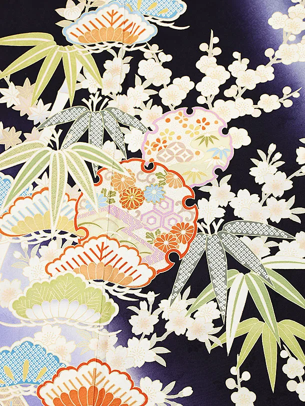 訪問着tQ1007 紺地 雪輪に松竹梅