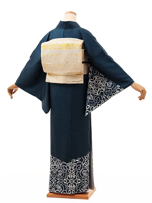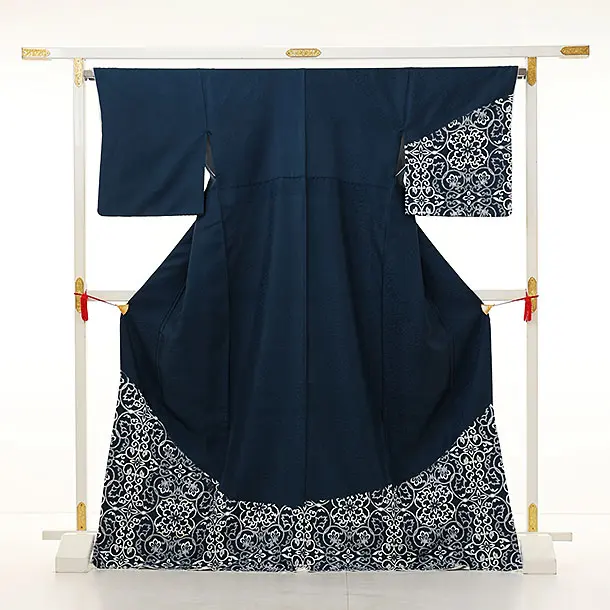 訪問着t1041 鉄紺色地 唐花