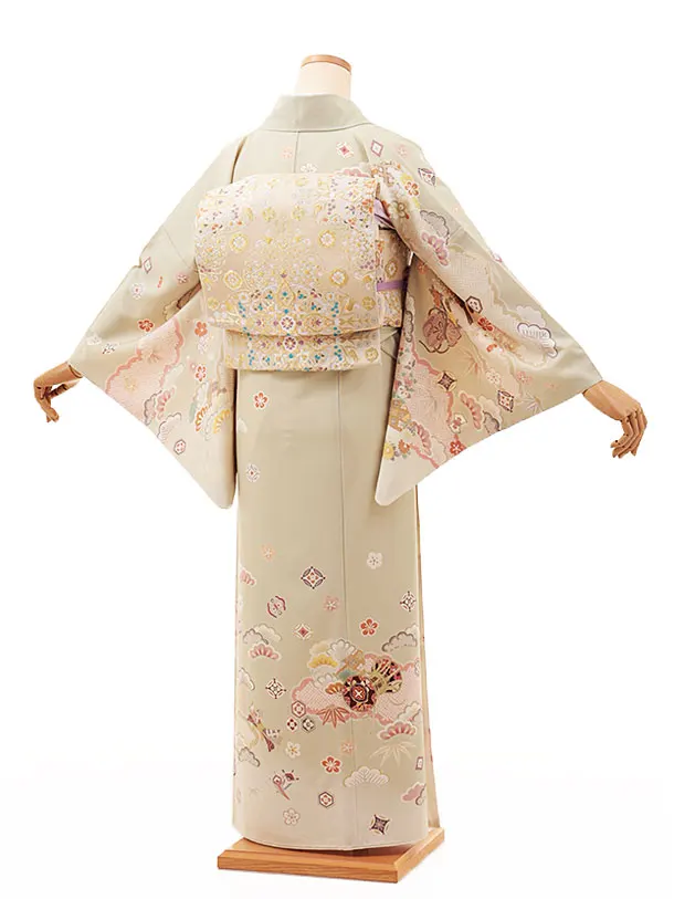 訪問着t1042 JAPANSTYLE グリーンベージュ雲取り鼓