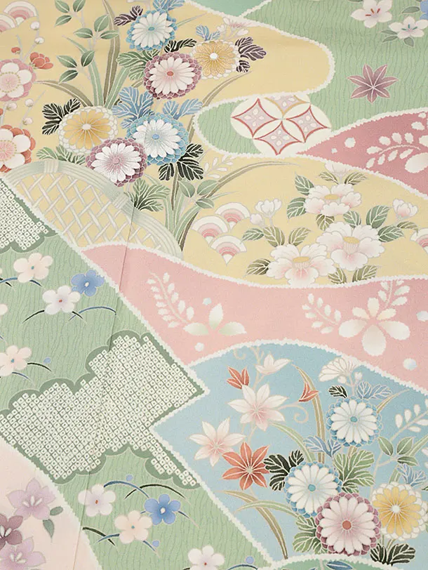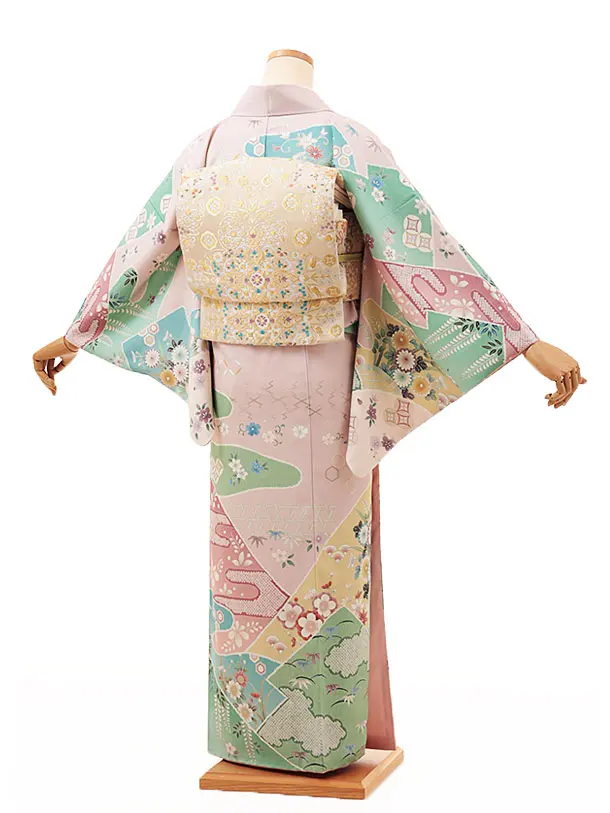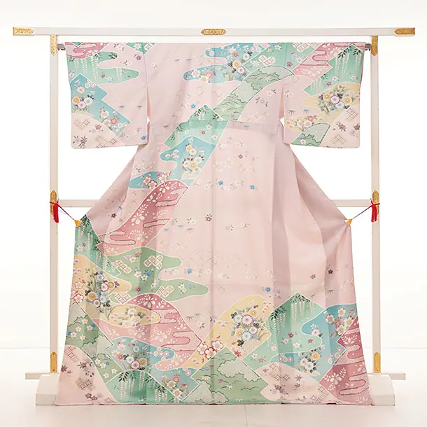訪問着t1082 ペールピンク地霞に四季花