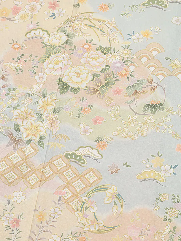 訪問着tt1092 水色雲取り四季花トールサイズ