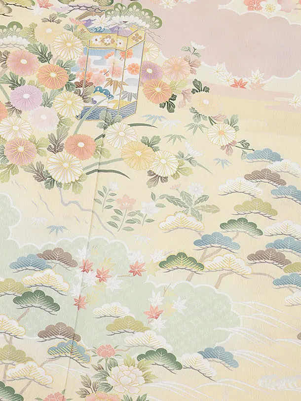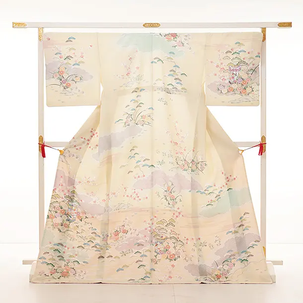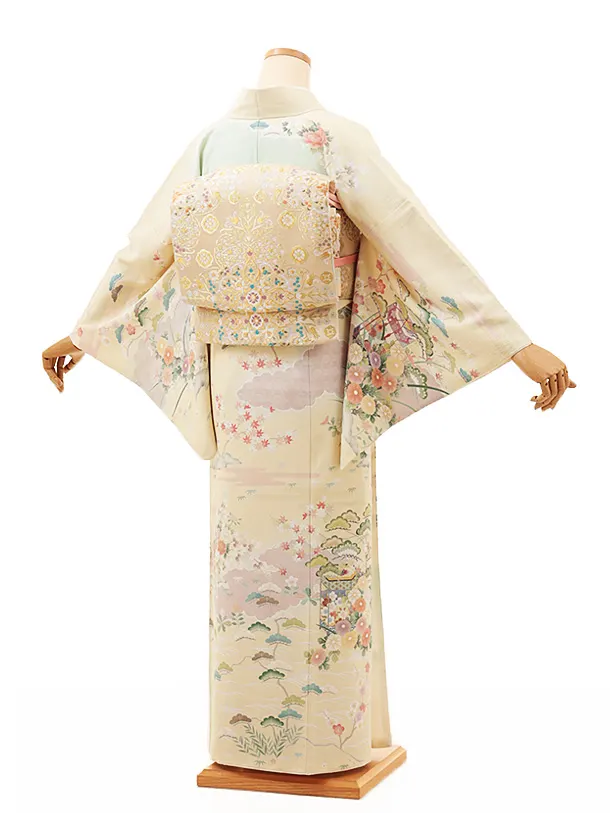 訪問着t1127 クリーム貝桶に四季花
