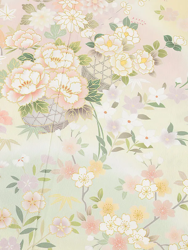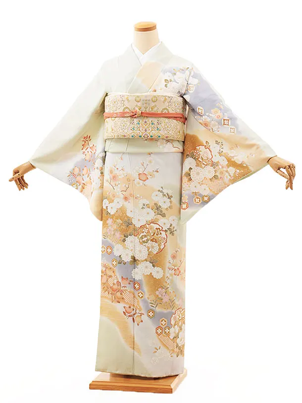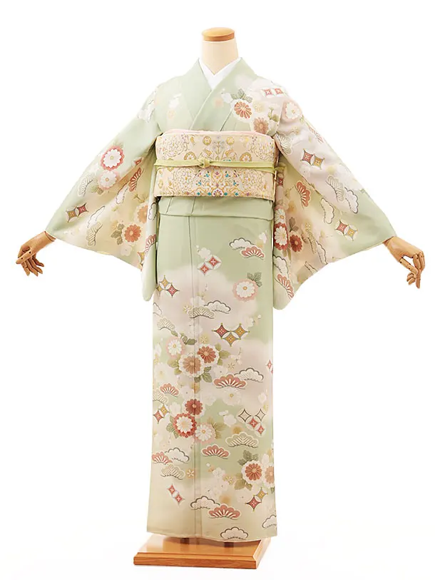 訪問着t1128 薄グリーン花かご