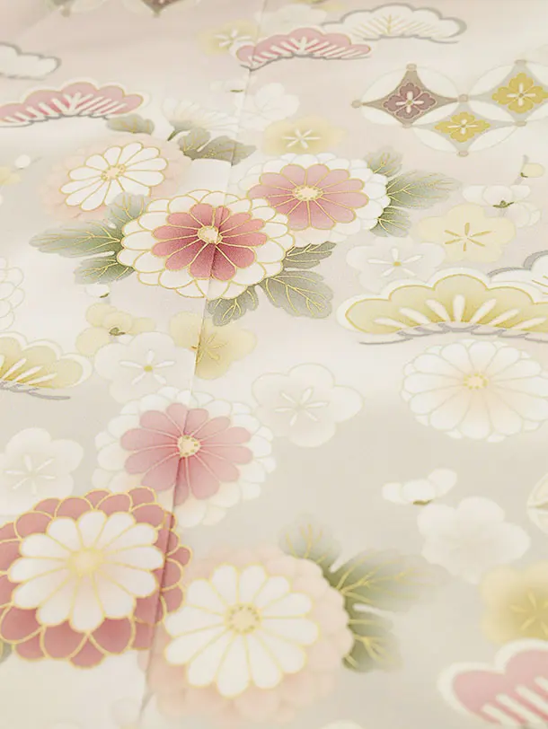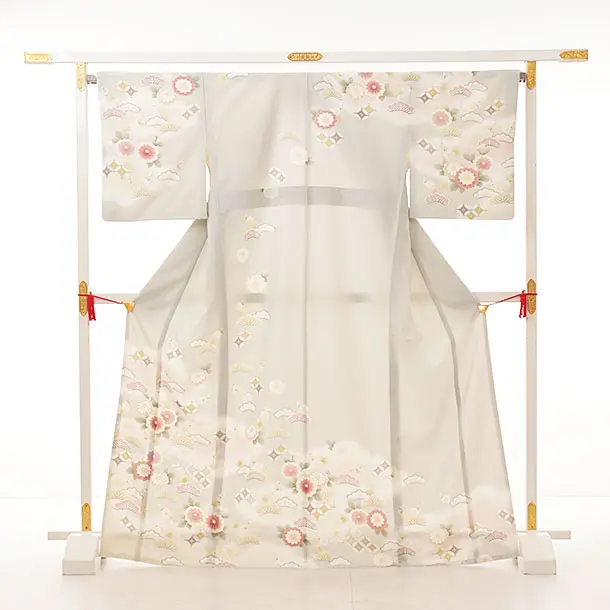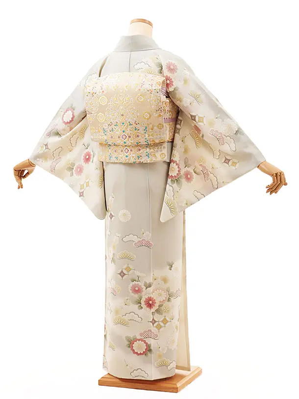 訪問着t1154 JAPANSTYLE グレー七宝松菊