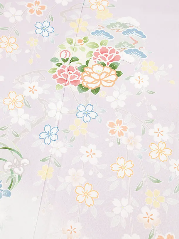 訪問着t1213 パープル 桜に花丸
