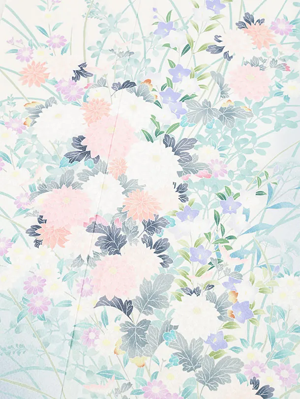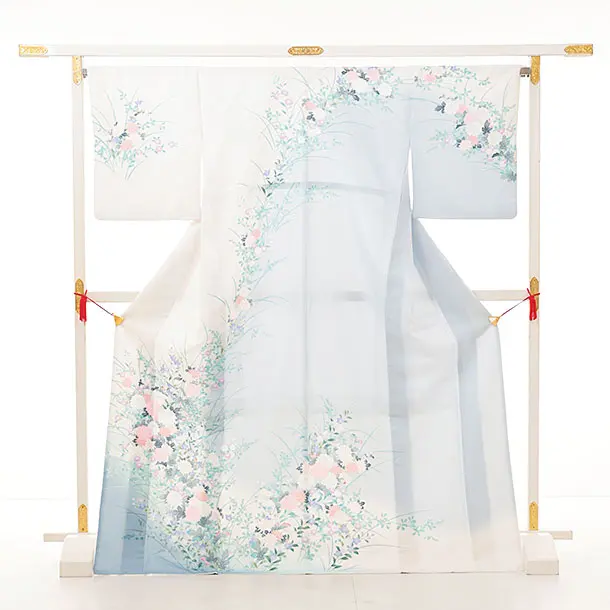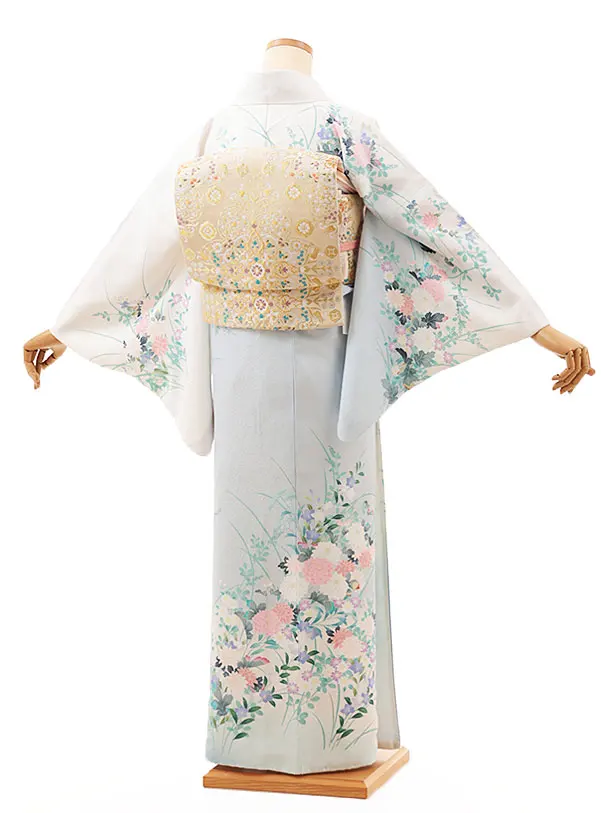 訪問着t1217 白ブルーぼかし桔梗に菊