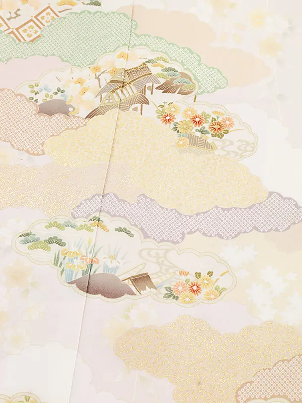 訪問着t1234 ピンク 雲取り 四季花