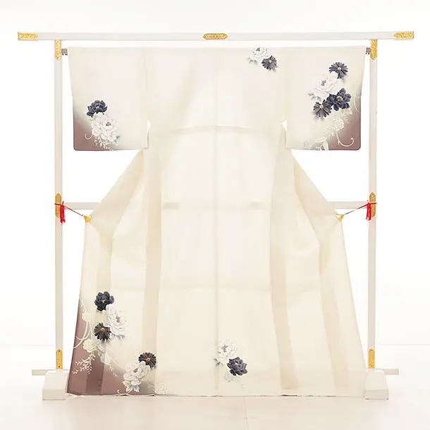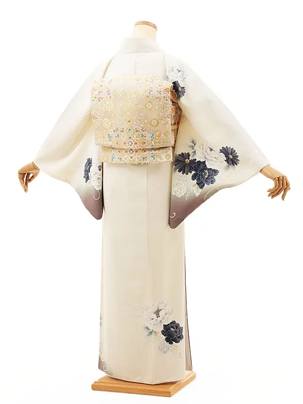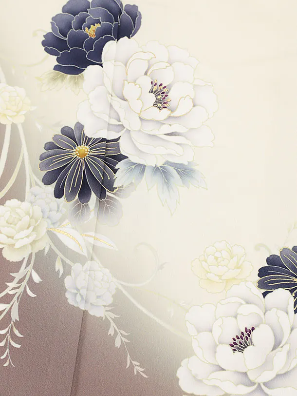 訪問着t1251 クリーム裾ぼかし 牡丹
