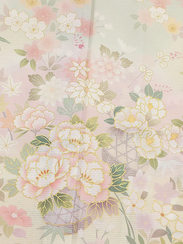 夏訪問着 絽 t1260 絽 薄ヒワ色 花籠に四季花