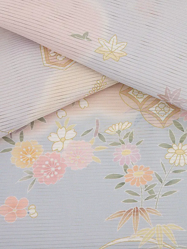 夏訪問着 絽 t1263 薄ブルーグレー 四季花