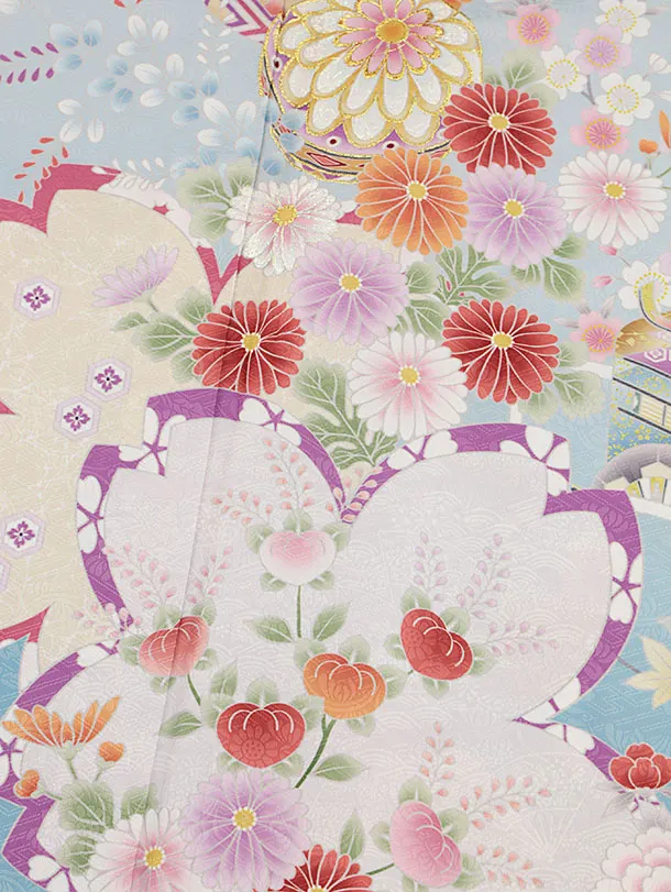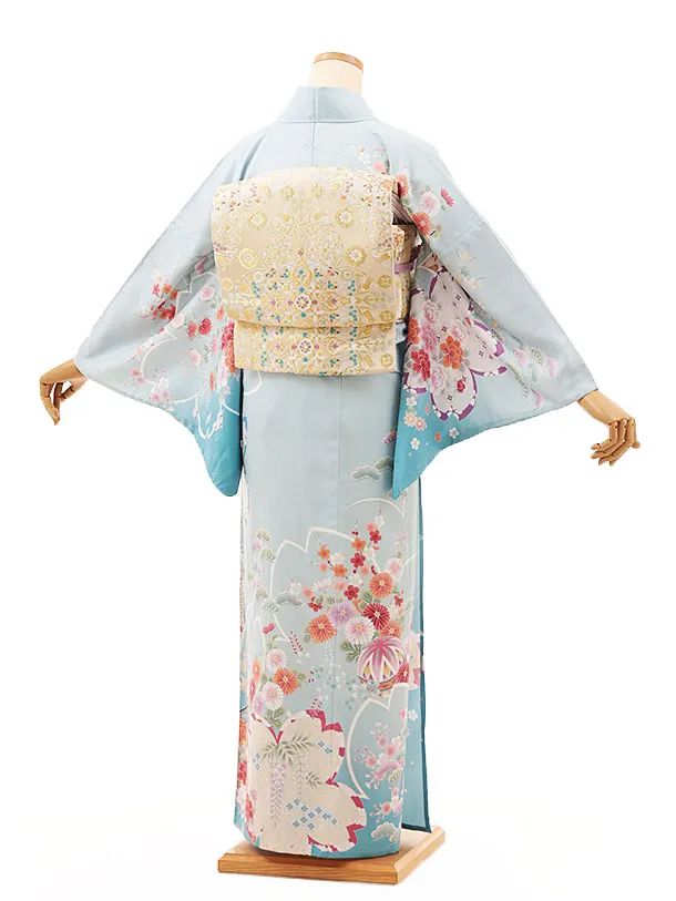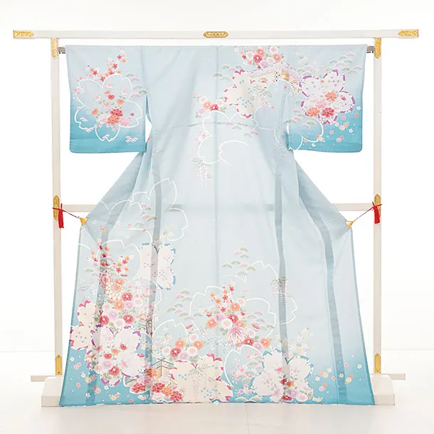 夏訪問着 単衣 1265 水色 裾ぼかし 鞠花づくし
