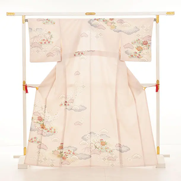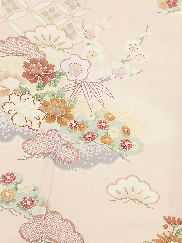 訪問着t1287 JAPAN STYLE ピンク 牡丹に雲