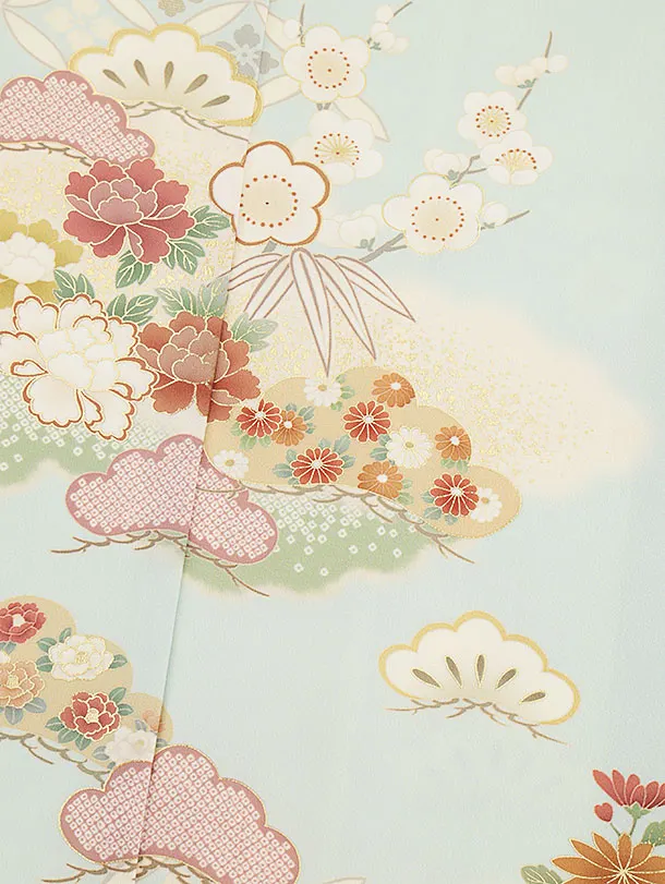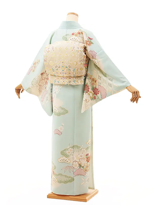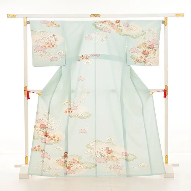訪問着t1288 JAPAN STYLE 水色 牡丹に雲