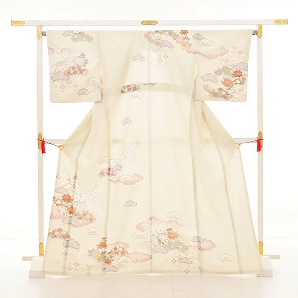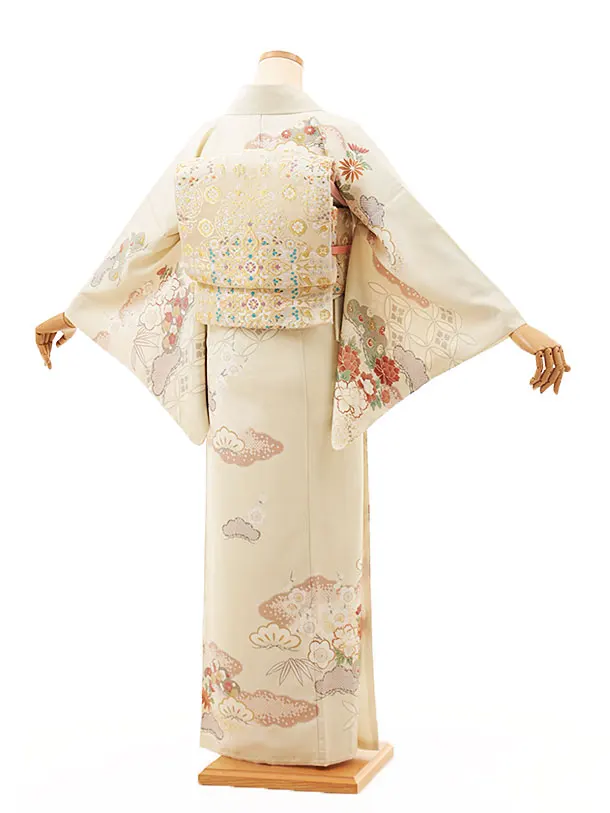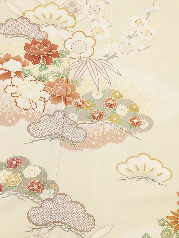訪問着t1289 JAPAN STYLE クリームベージュ 牡丹に雲