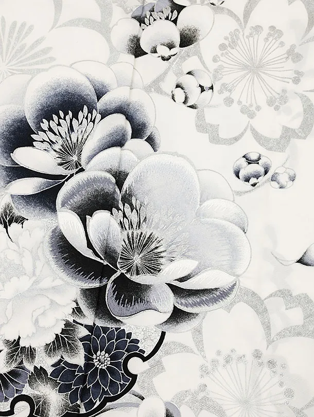 訪問着t1293 白シルバー 雪輪花