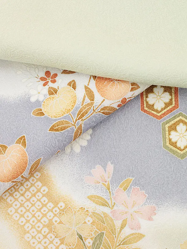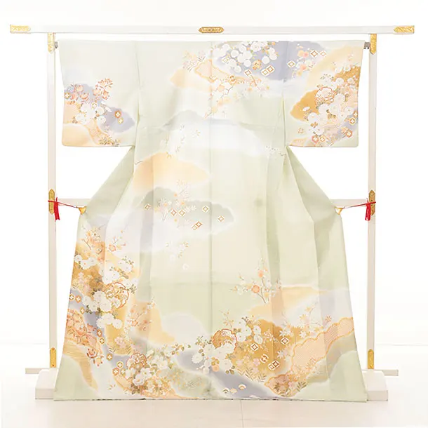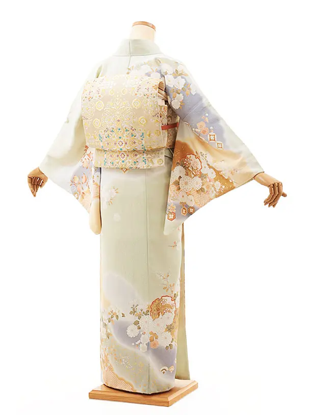 訪問着t1340 グリーン地 雪輪 四季花