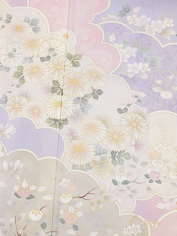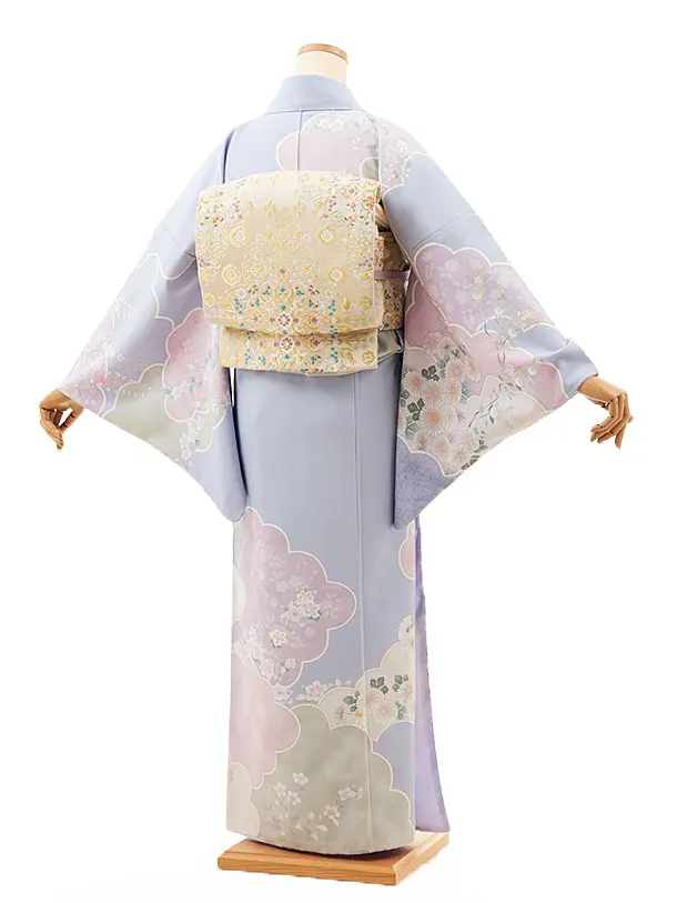 訪問着t1346 パープル地 雲取り 四季花トールサイズ