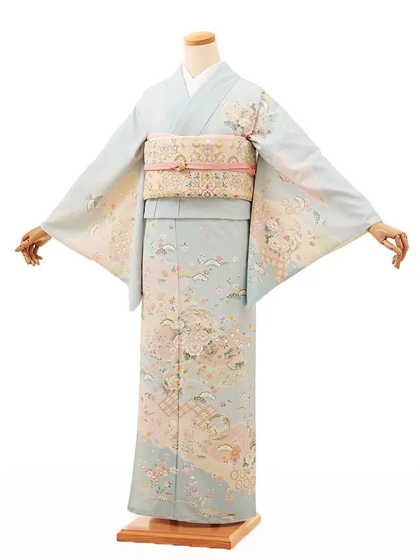 訪問着t1348 水色 おぼろ調