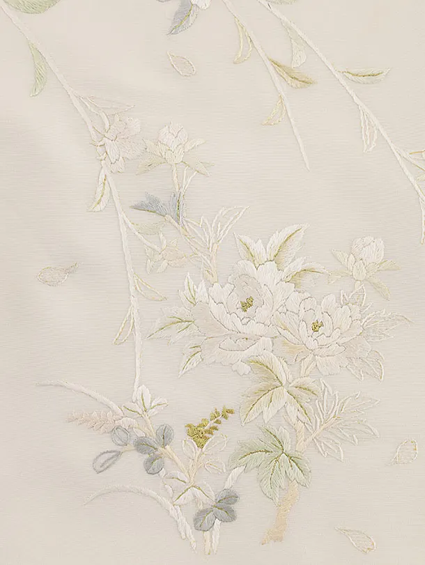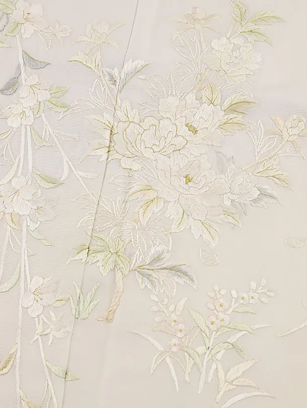 訪問着t1357 グレーぼかし 刺繍 四季花