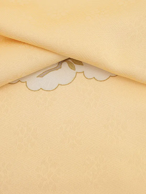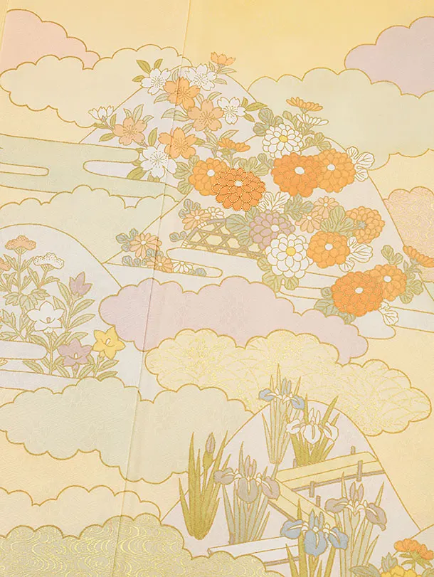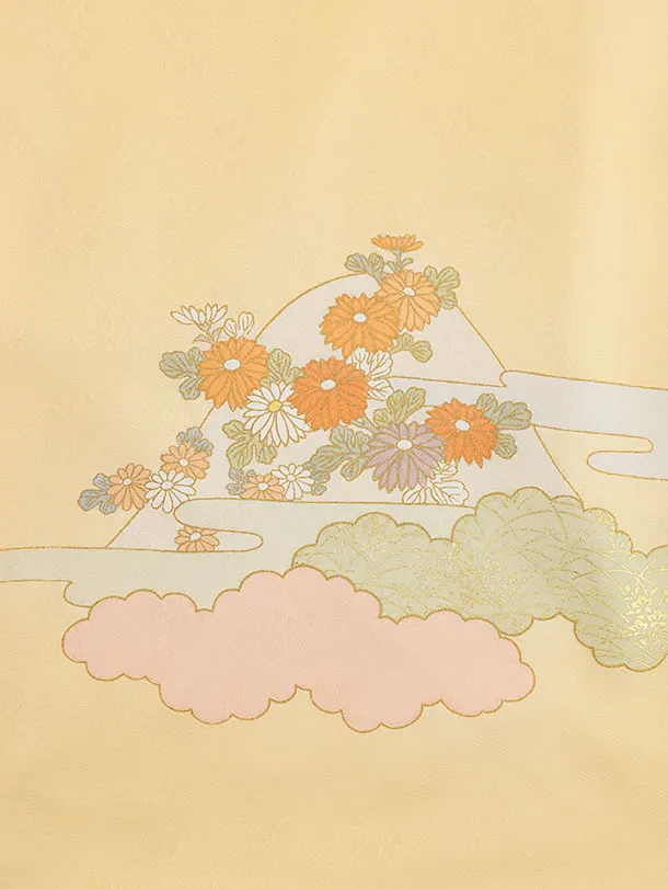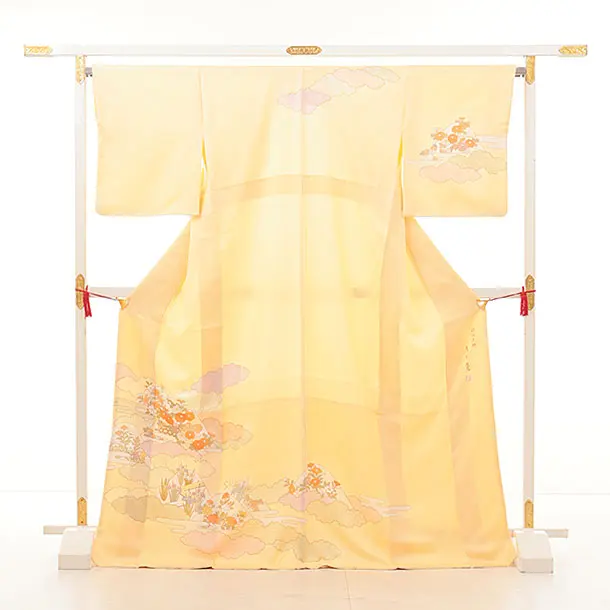 訪問着t1363 藤井 寛 瑞祥友禅 たまご色 雲 かすみ花