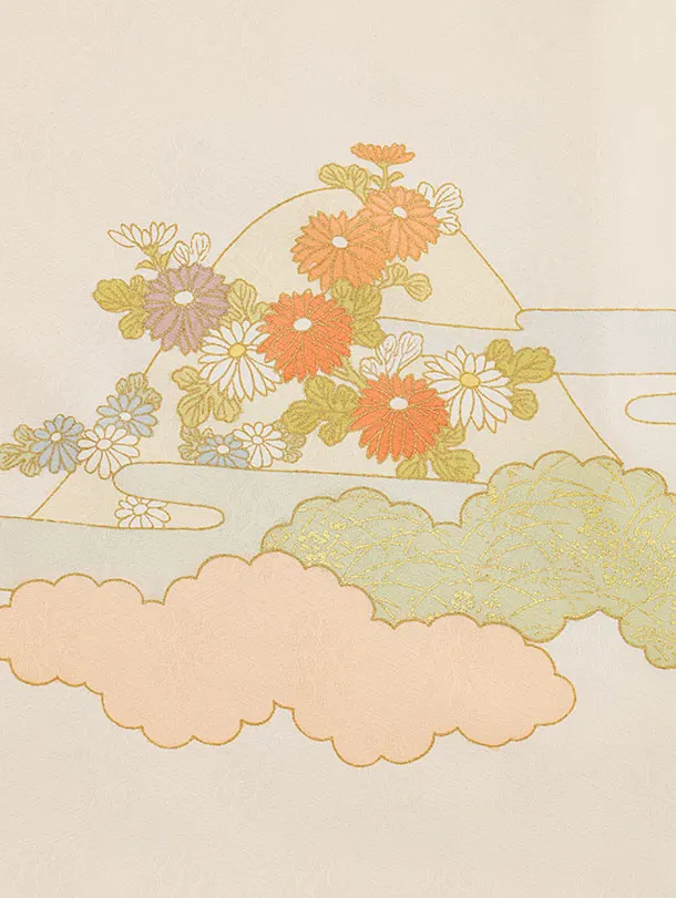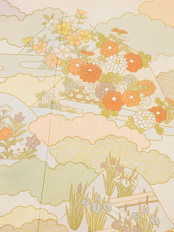 訪問着t1364 藤井 寛 瑞祥友禅 クリームピンク 雲 かすみ花