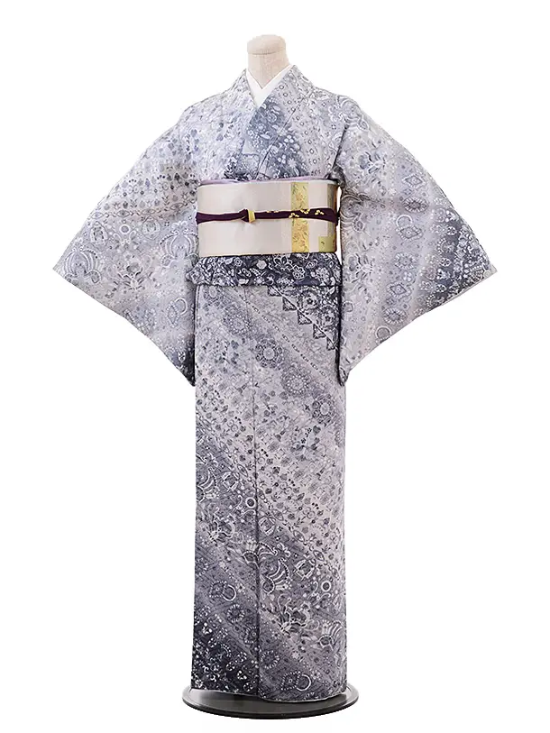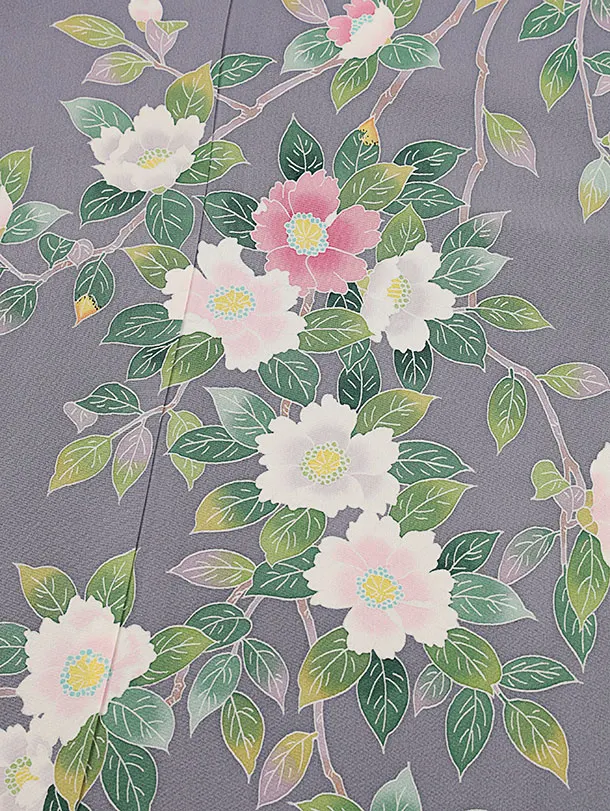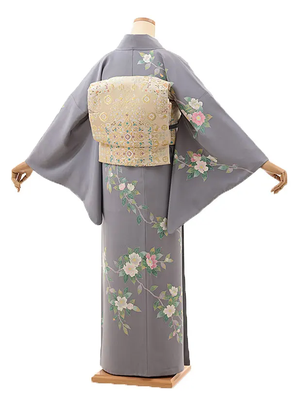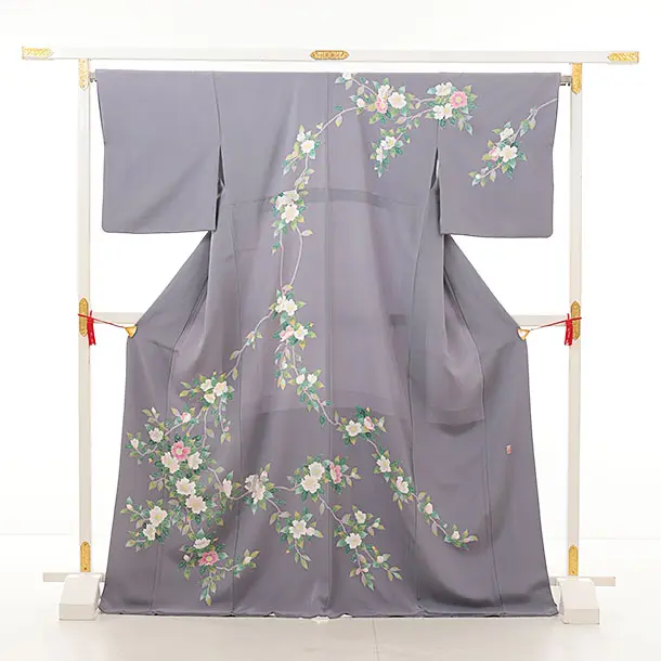 訪問着t1366 グレー地 枝花