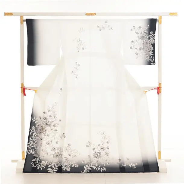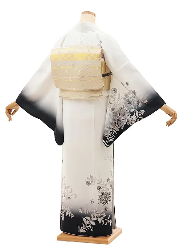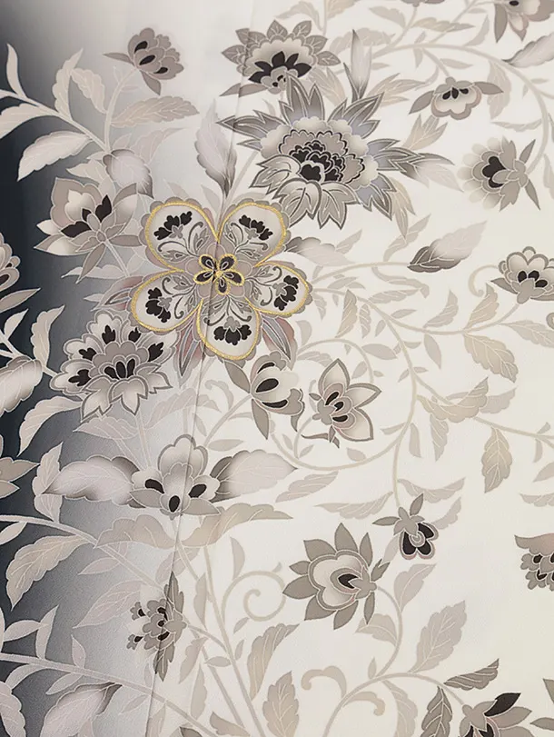 訪問着t1385 式部浪漫 白黒ぼかし優雅唐花