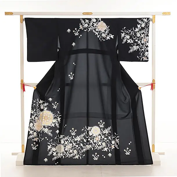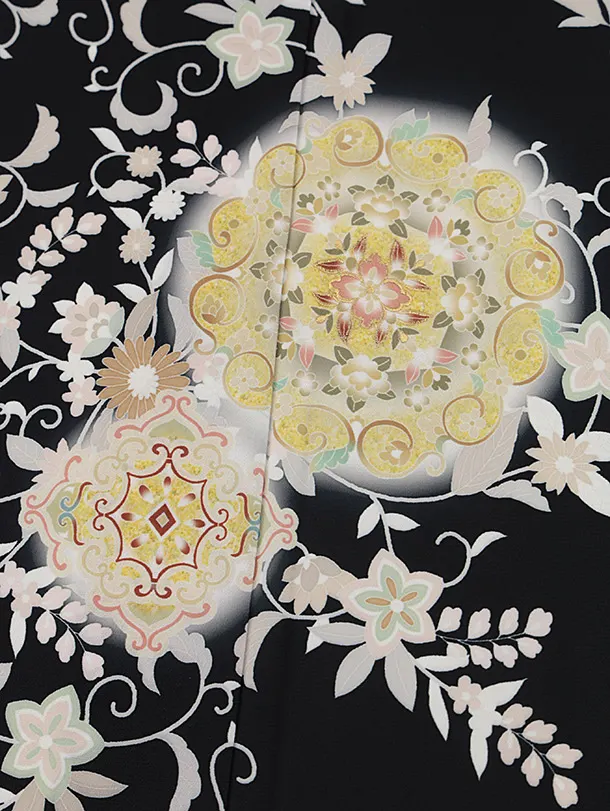 訪問着t1388 式部浪漫 黒 華紋更紗
