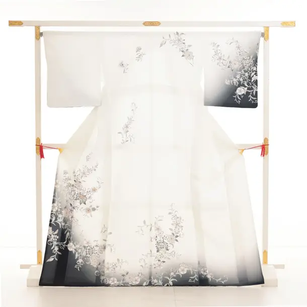 訪問着t1389 式部浪漫 白黒ぼかし 風雅更紗