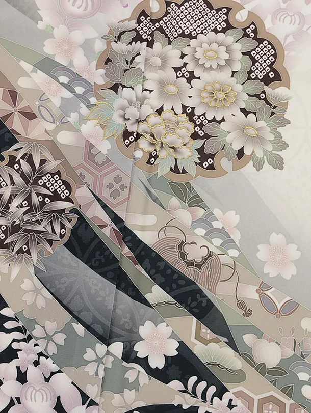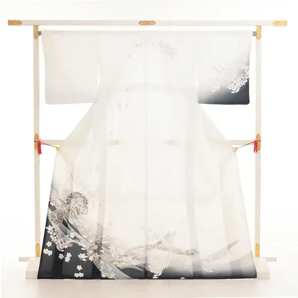 訪問着t1391 式部浪漫 白黒ぼかし 桜橘七宝