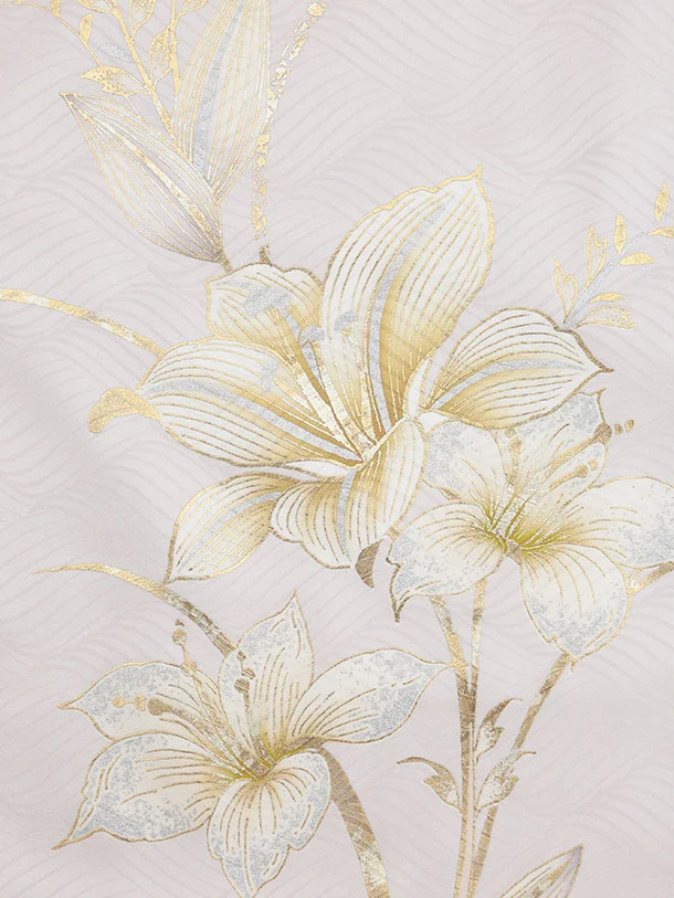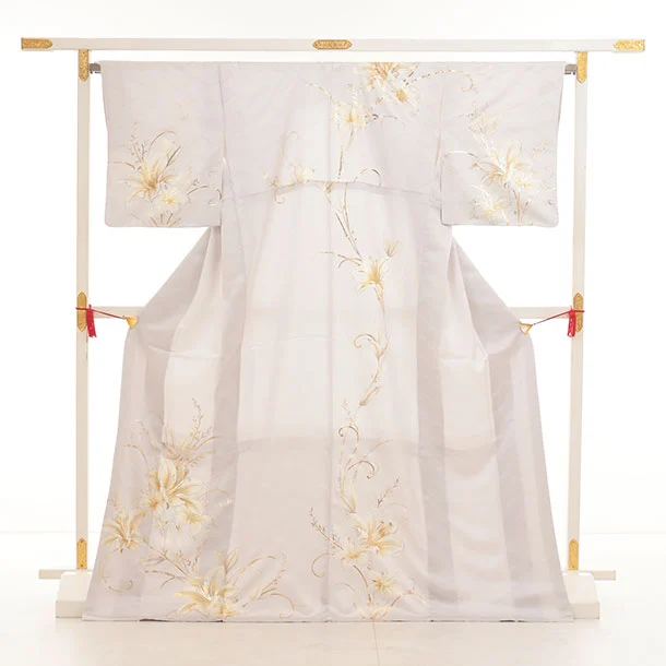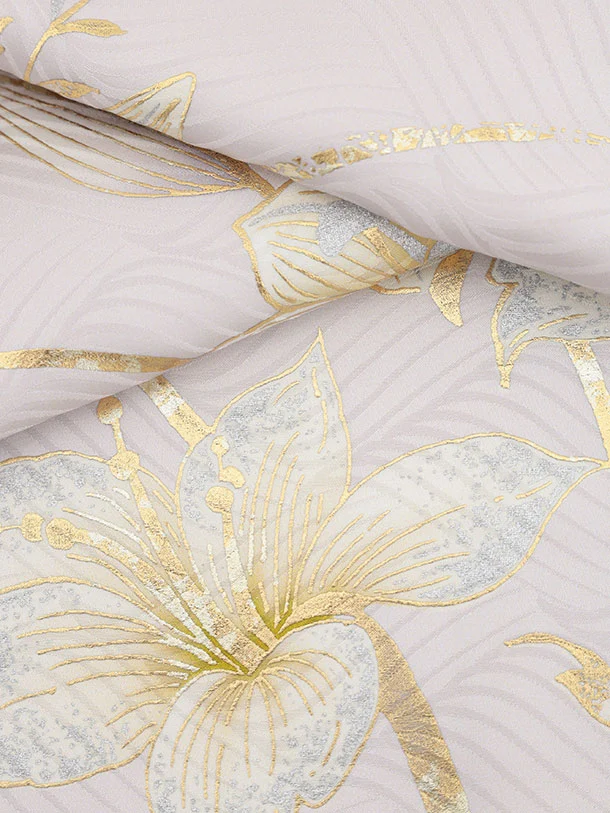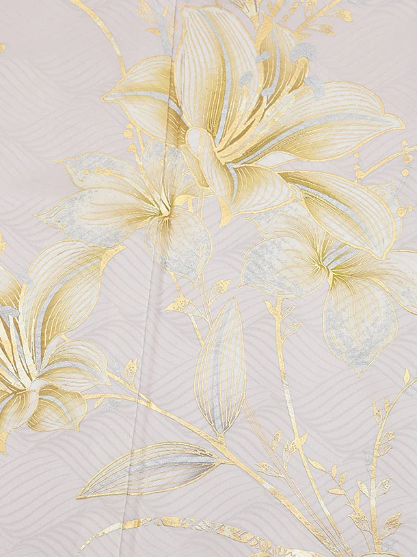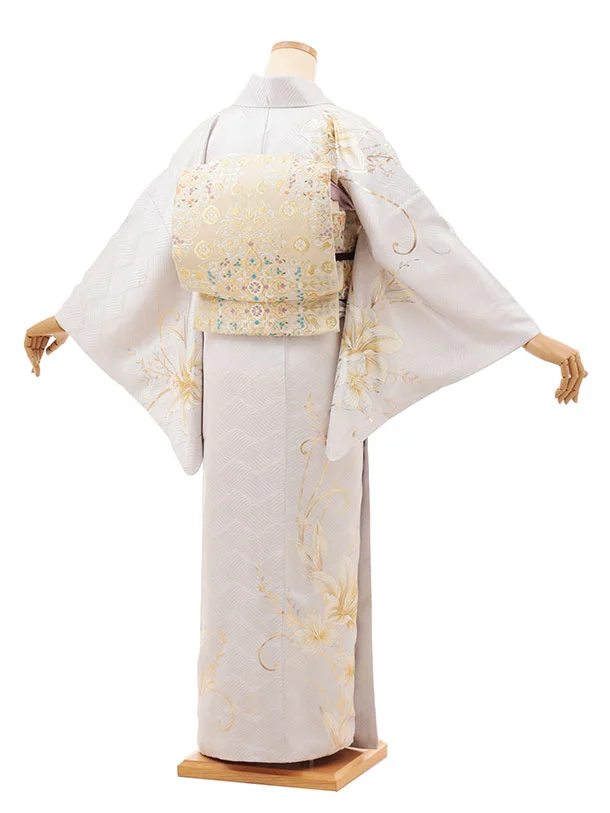 訪問着t1399 グレイッシュパープル 金彩 百合