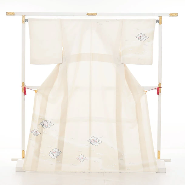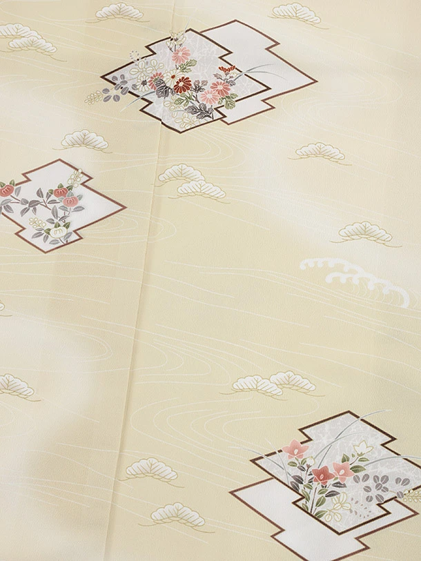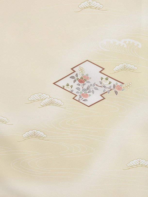 訪問着t1413 クリームベージュ地 水面に松皮菱
