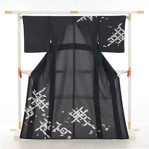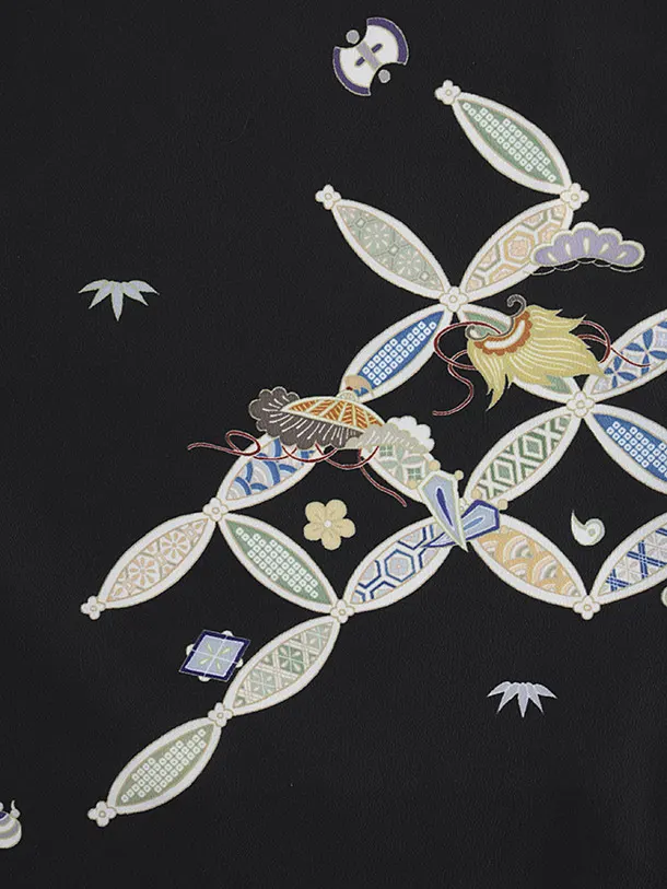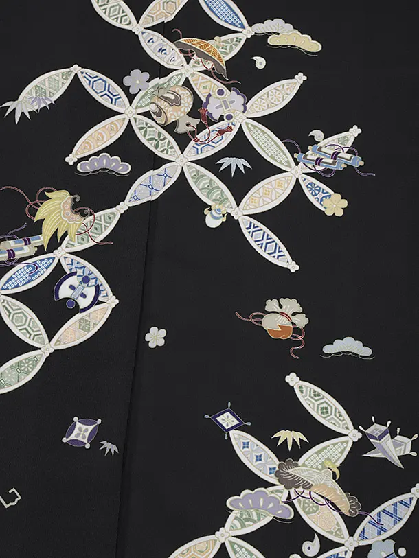 訪問着t1422 黒地 七宝尽くし