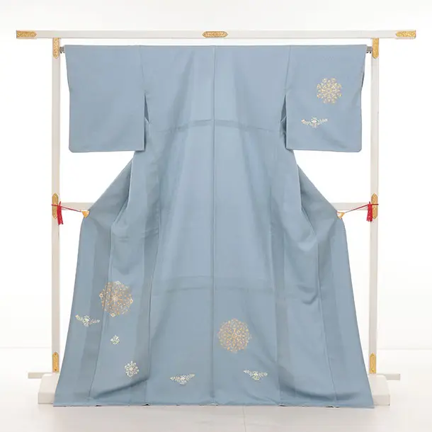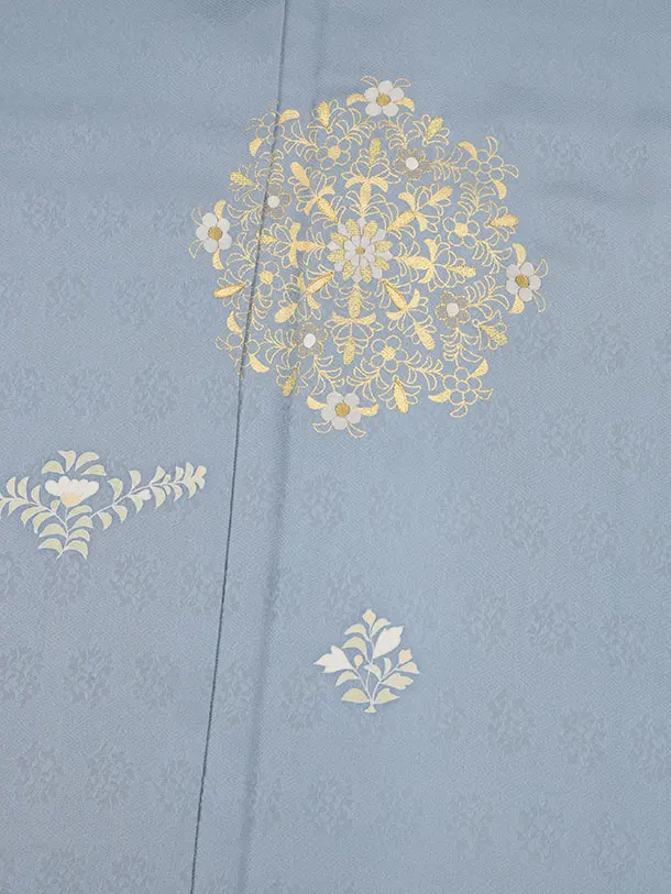 訪問着t1438 アイスグレー地 金彩唐花