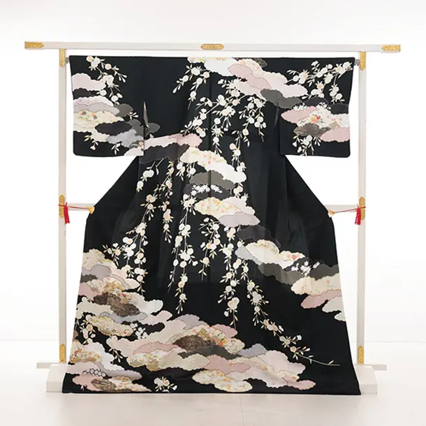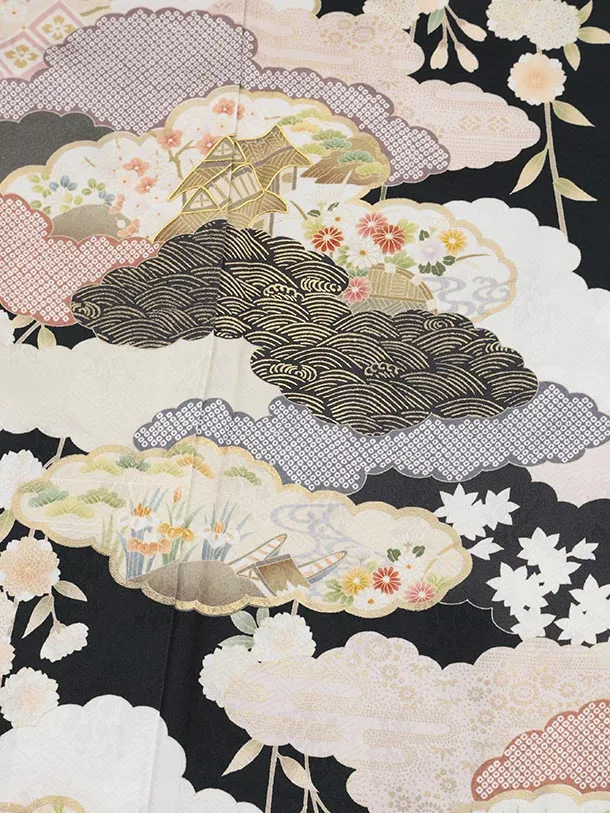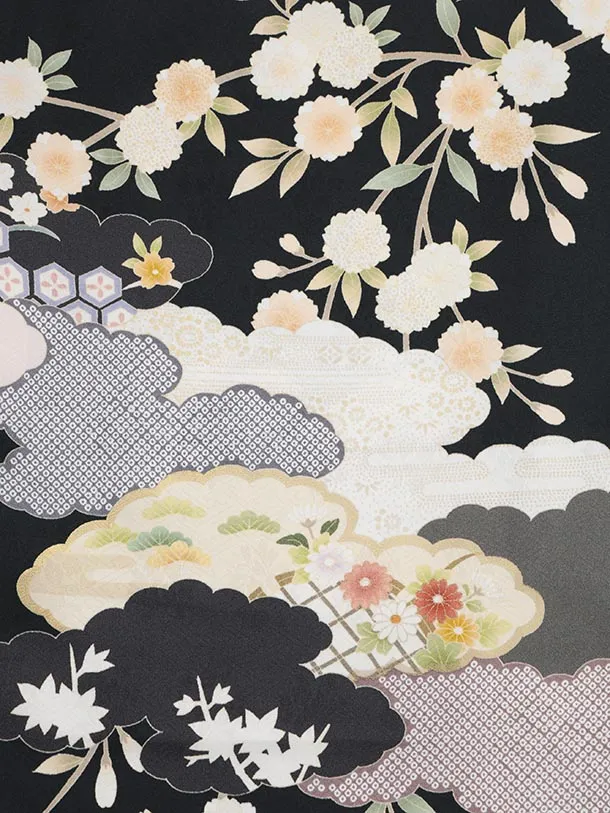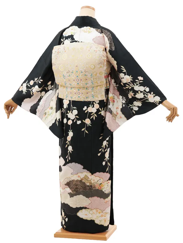 訪問着t1457 チャコールグレー地 桜に雲取り