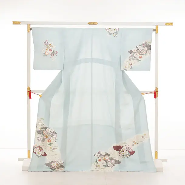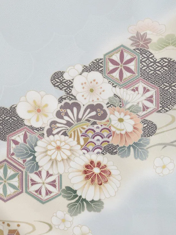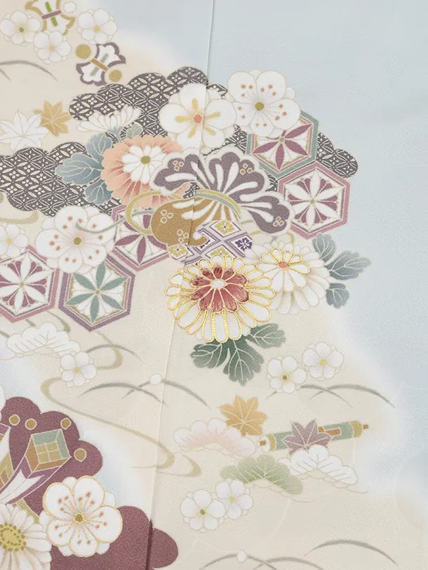 訪問着t1460 ペールブルー 宝尽くし花
