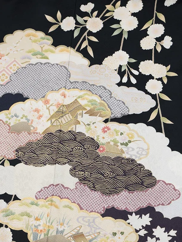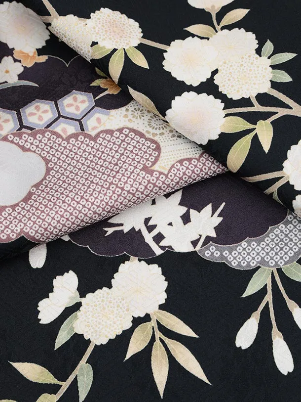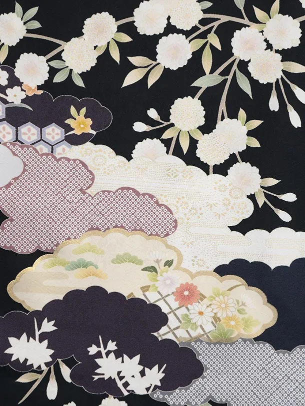 訪問着t1461 紺地 桜に雲取り
