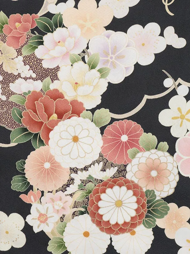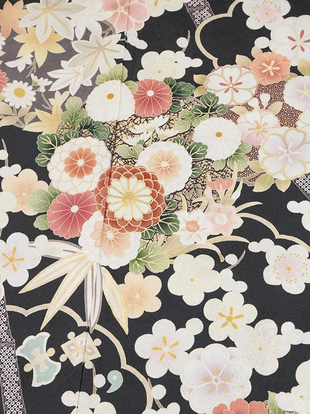 訪問着t1462 チャコールグレー 宝に花尽くし