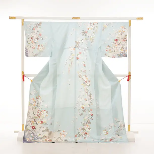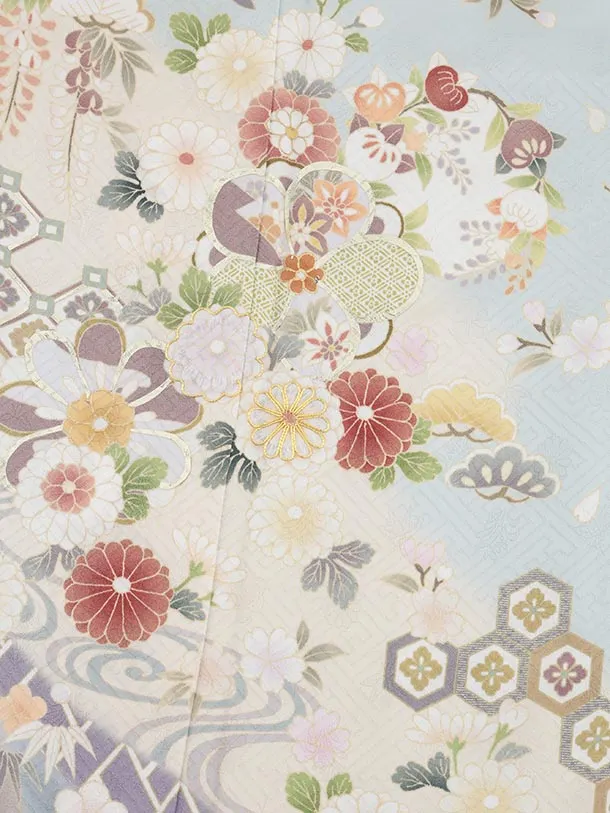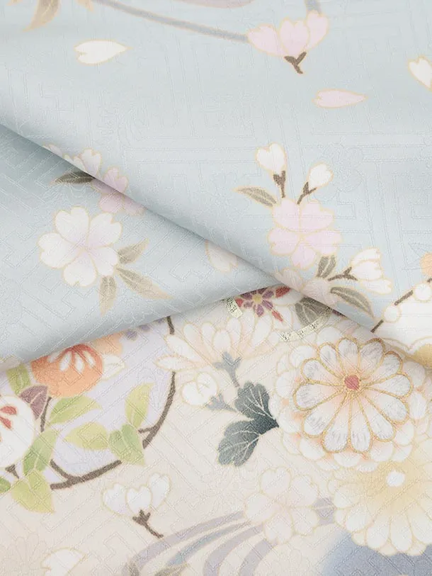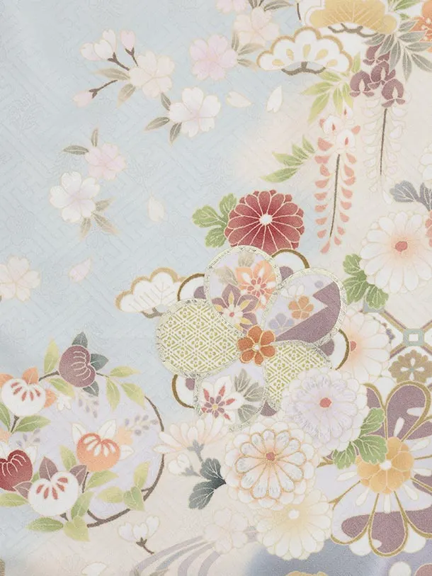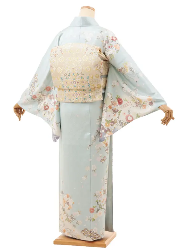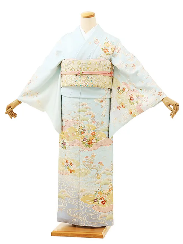 訪問着tt1481 ペールブルー 流水に桜菊(トールサイズ)