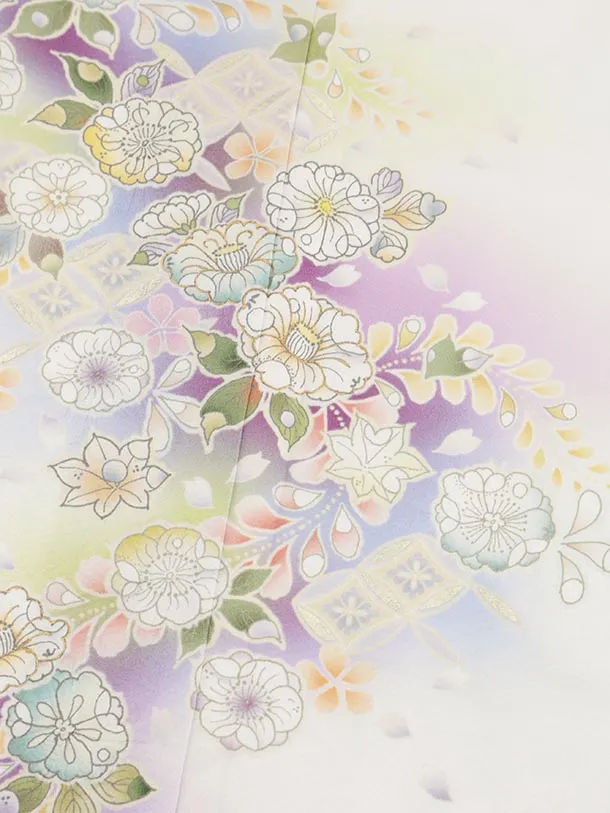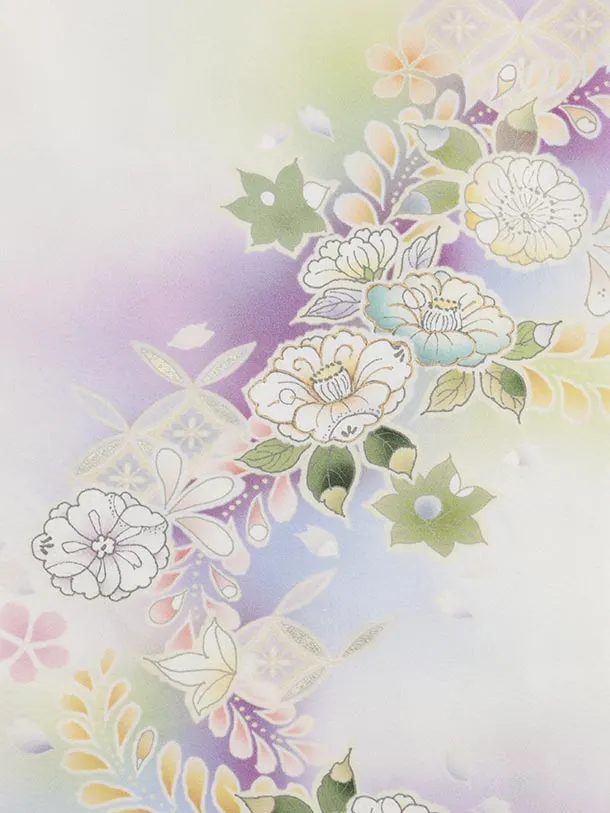 訪問着レンタル tQ1485 白地 辻が花調