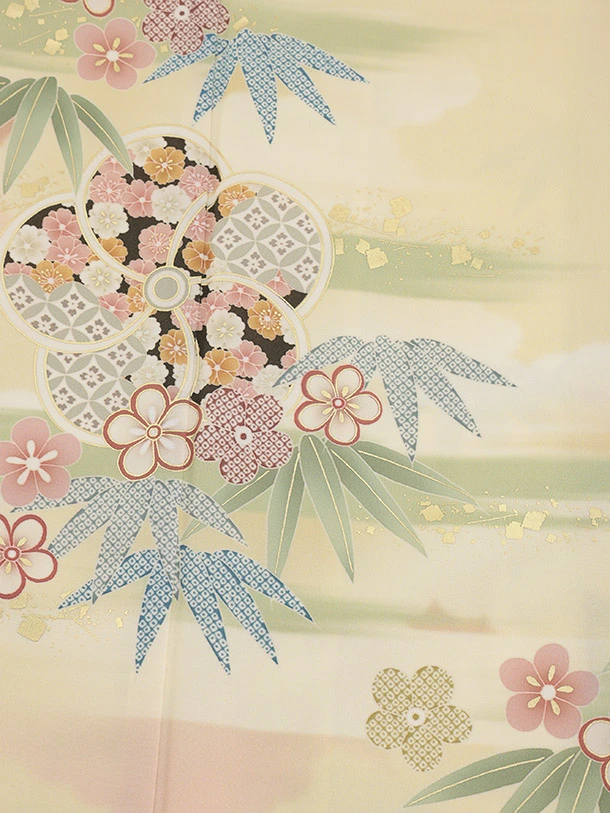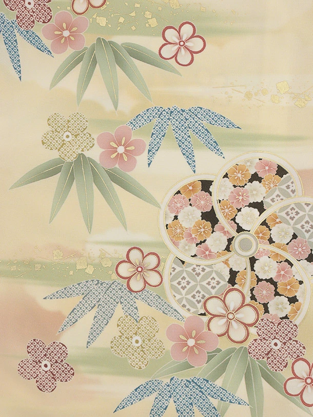 訪問着t1489 JAPAN STYLE クリーム 霞にねじり梅