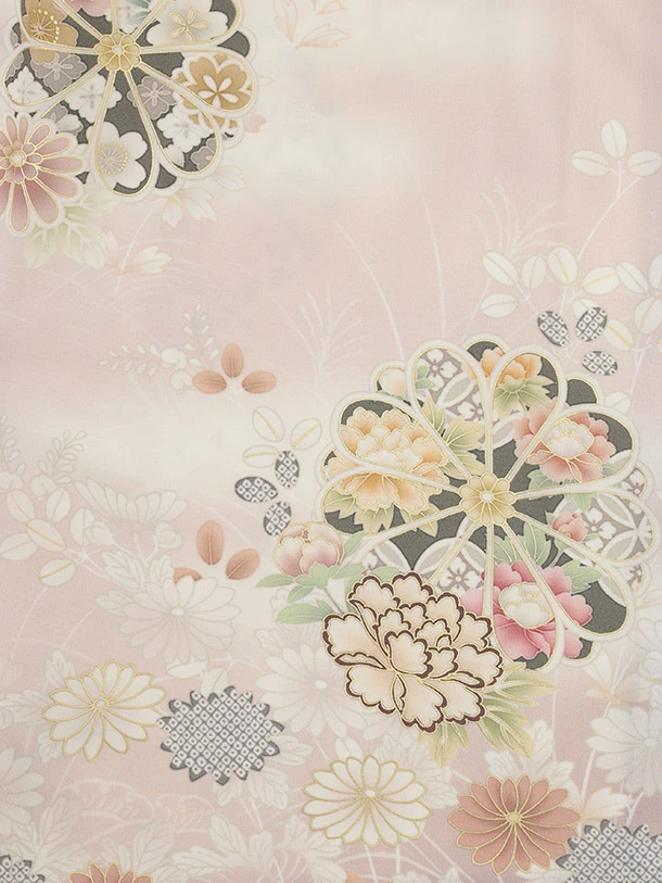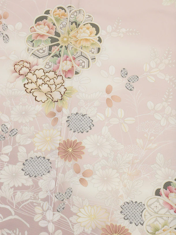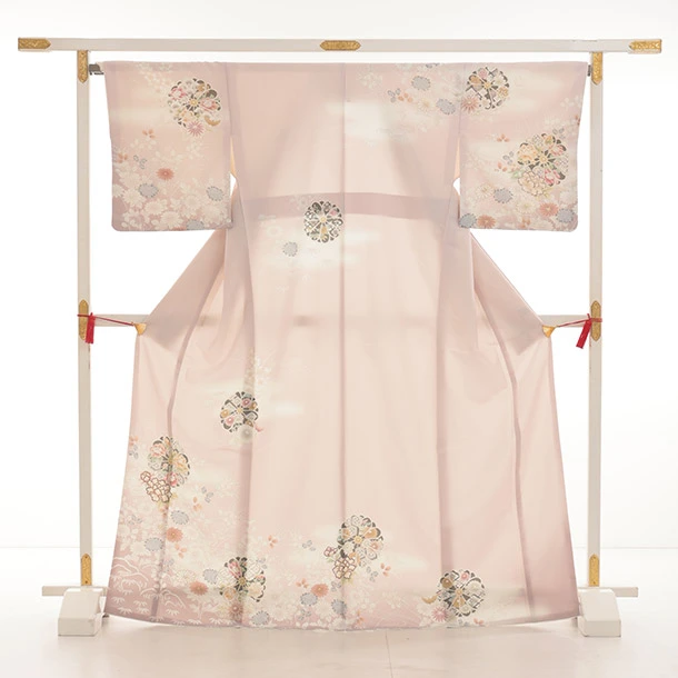 訪問着t1492 JAPAN STYLE ピンク 菊に御所解