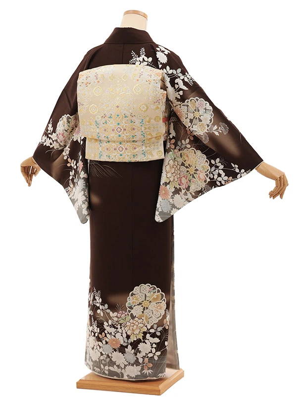 訪問着t1494 JAPAN STYLE ブラウン 菊に御所解