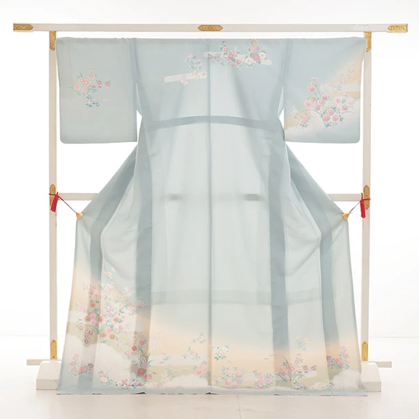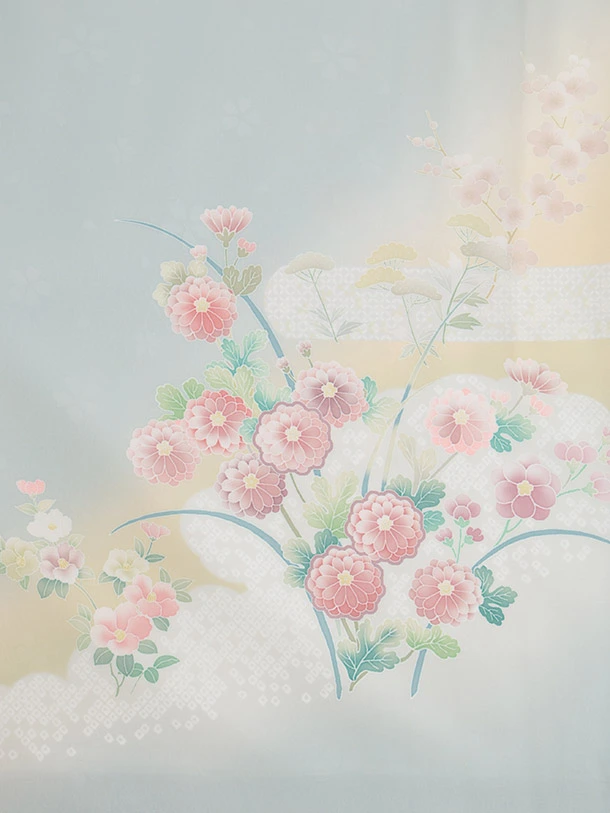 訪問着tt1528(トールサイズ) 式部浪漫 薄ブルーグレー 雲草花