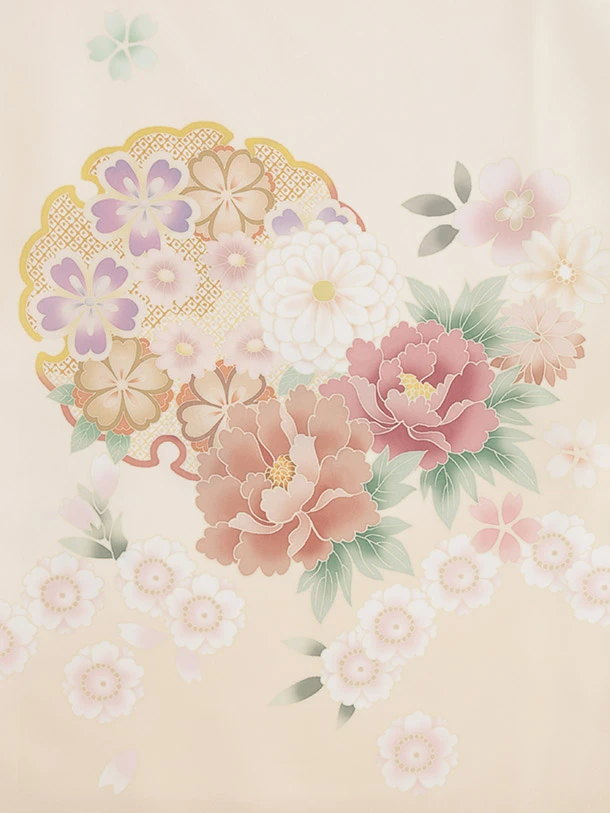 訪問着tQ1532 式部浪漫 クリームピンク 雪輪に花