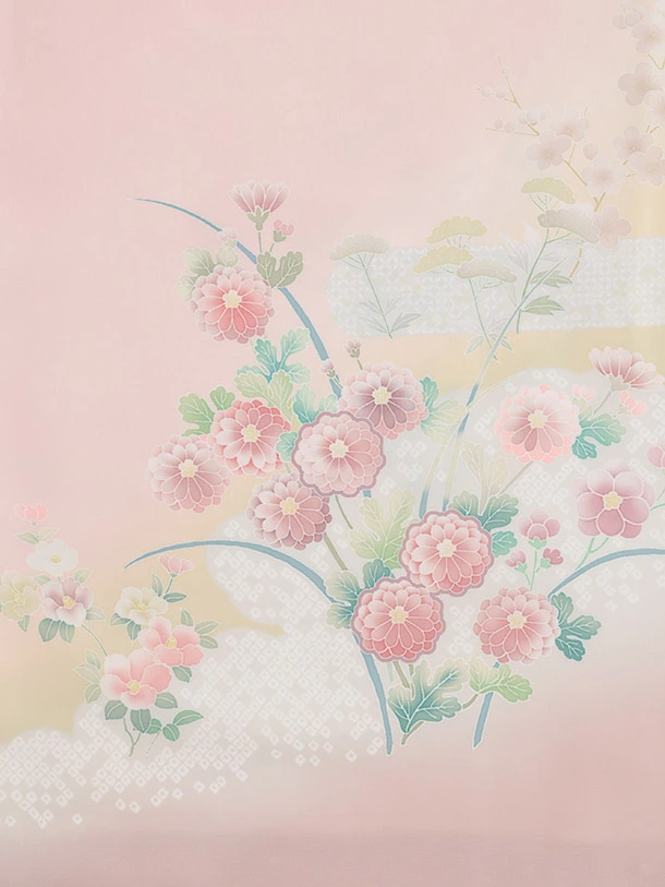 訪問着tQ1533 式部浪漫 ピンク 雲草花