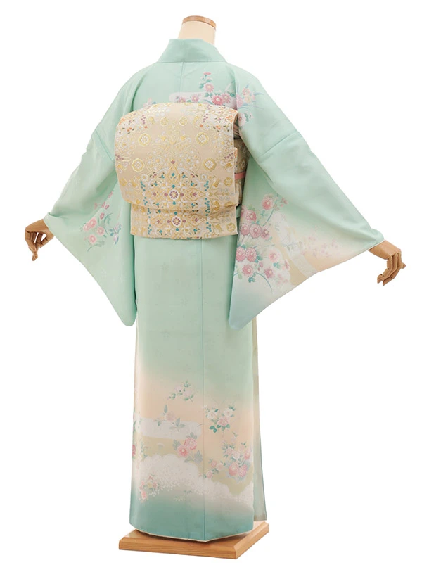 訪問着tQ1535 式部浪漫 ペールグリーン 雲草花