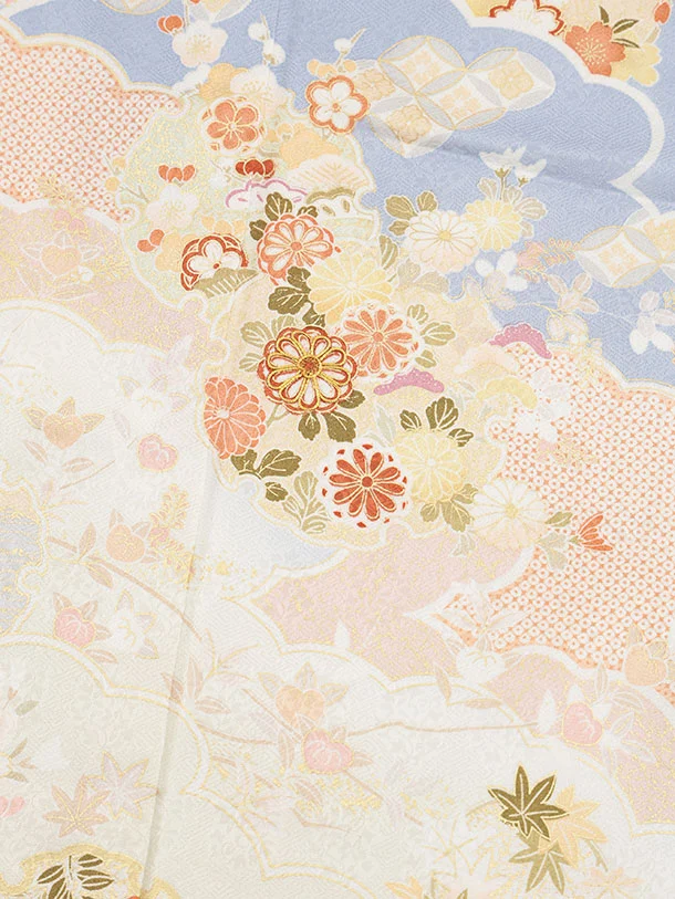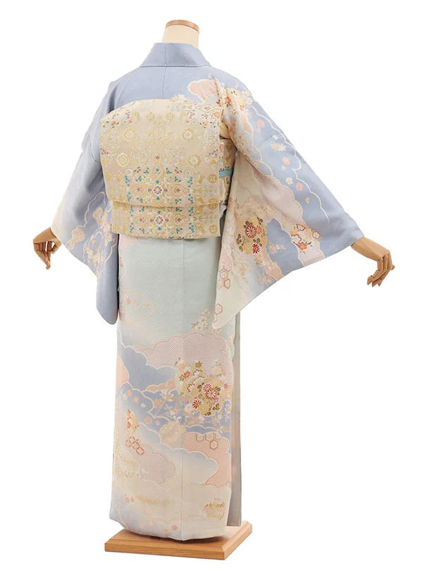 訪問着t1543 ペールブルー 雲取り雪輪菊