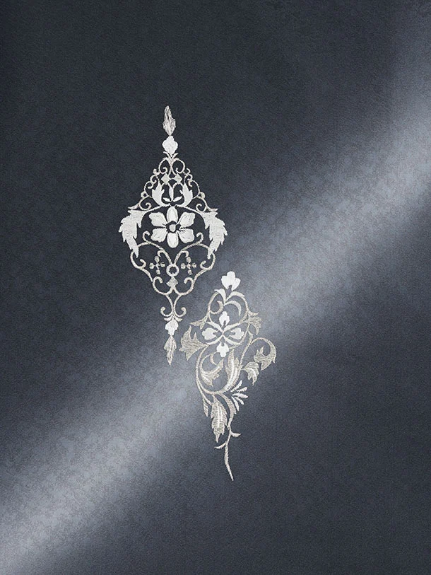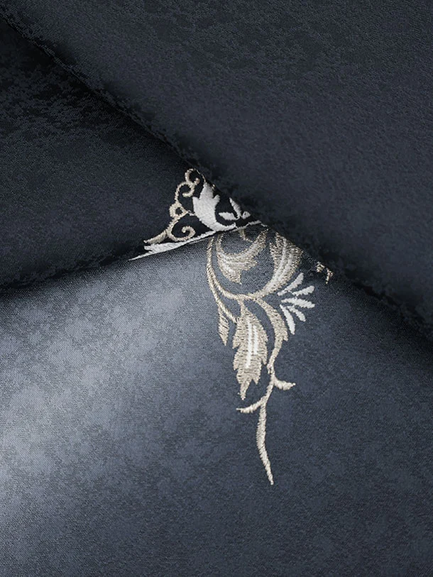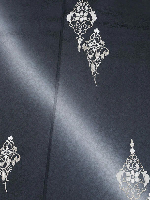 訪問着t1554 チャコールグレー 刺繍 更紗